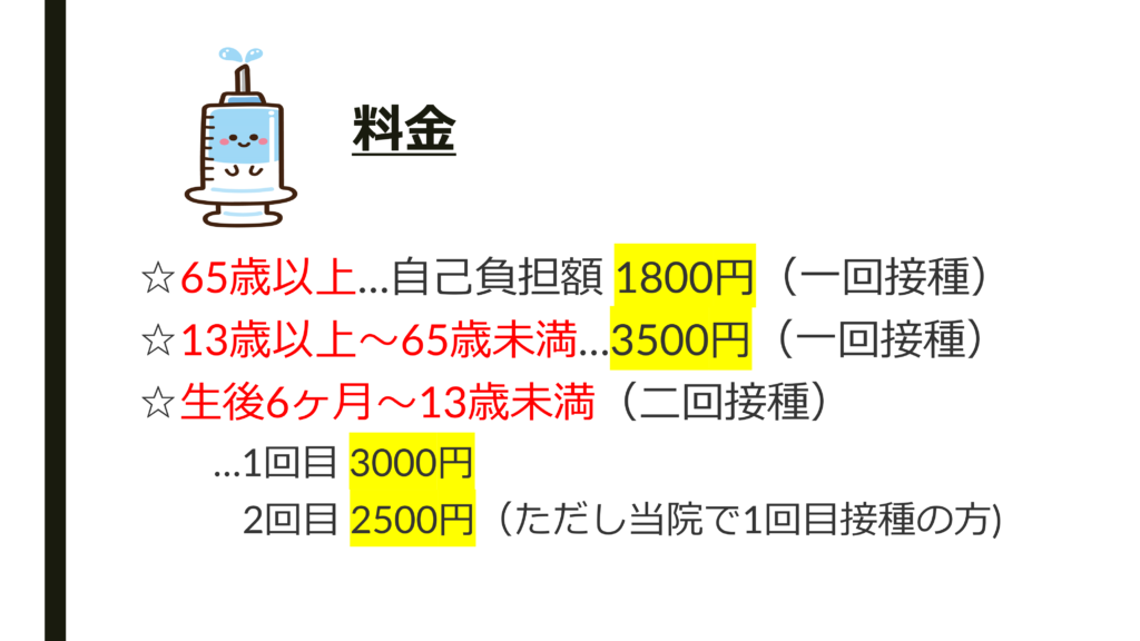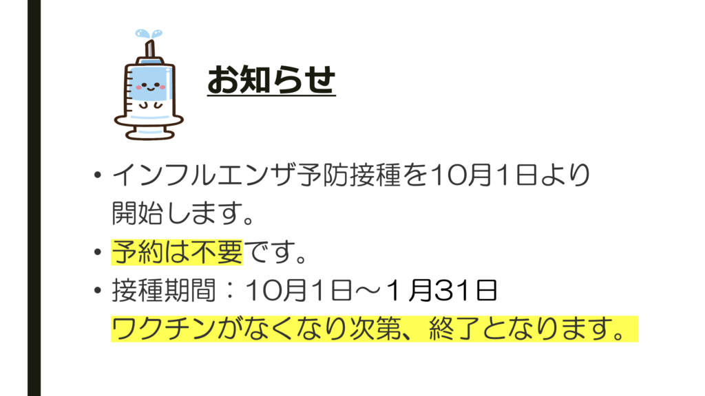 インフルエンザ予防接種のお知らせ