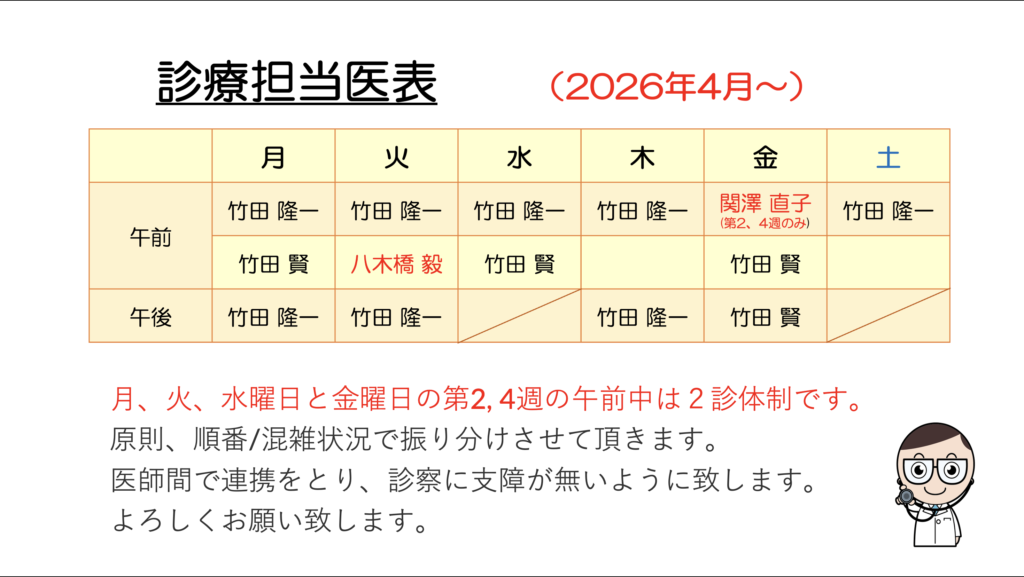 4月からの診療担当医表
